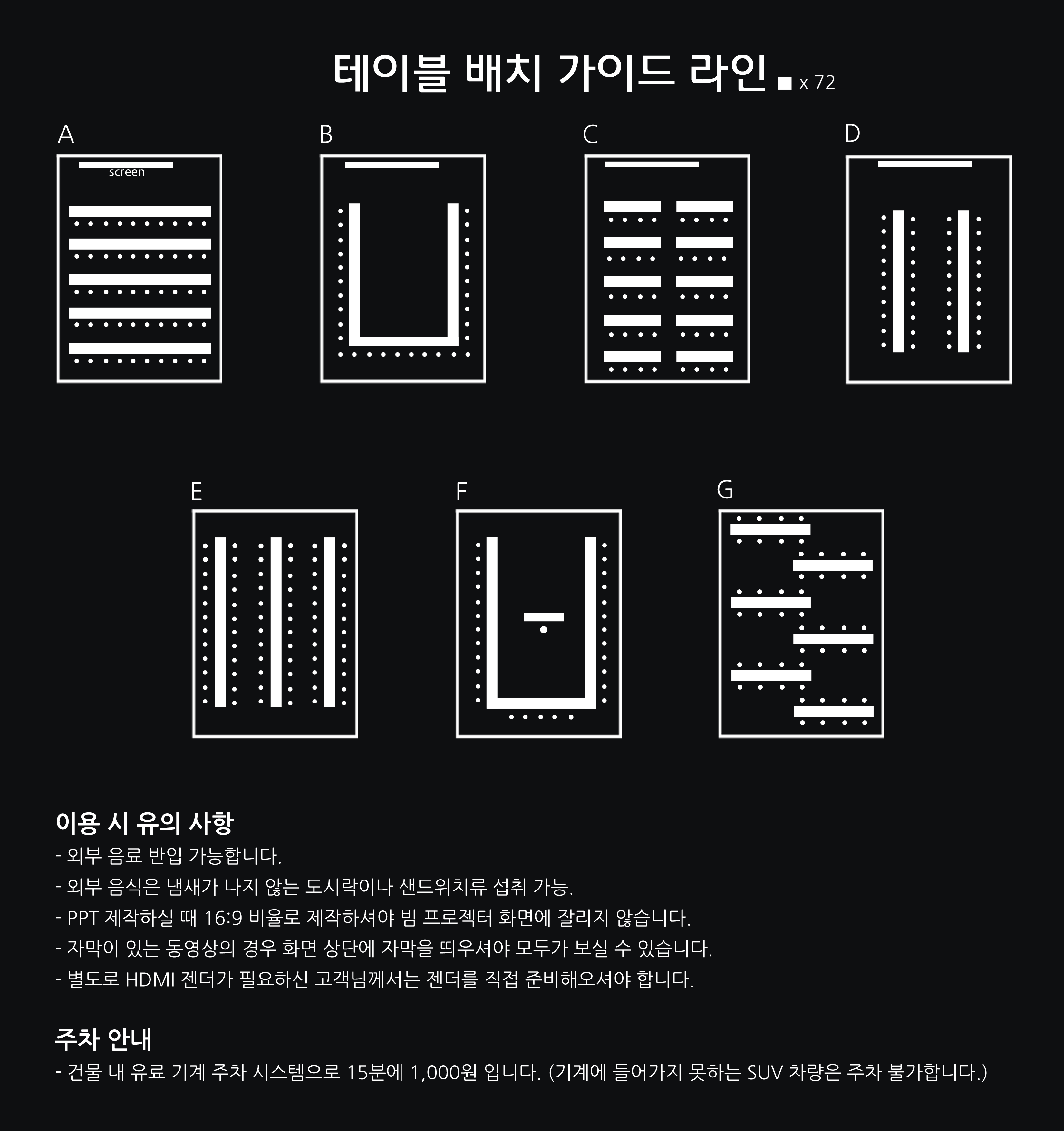전체 대관 시 배치 방법 및 유의사항